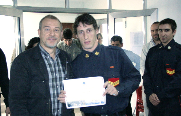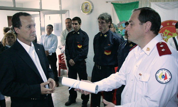 RUBEN GIUSTINIANI EN VILLA OCAMPO – El senador nacional visitó este viernes el cuartel de bomberos de Villa Ocampo. Fue para entregar la mención de honor “Domingo Faustino Sarmiento” por sus tareas de coordinación, remoción de escombros y rescate de víctimas durante la Tragedia de Rosario ocurrida el pasado 6 de agosto.Este cuartel de Bomberos, junto al de Reconquista y Romang fueron reconocidos junto a más de 100 agrupaciones de Bomberos de toda la provincia de Santa Fe, además de los cuerpos de las provincias de Buenos Aires y Entre Ríos, en una ceremonia que se realizó el 3 de septiembre pasado en la Cámara Alta, por iniciativa del legislador santafesino Rubén Giustiniani.