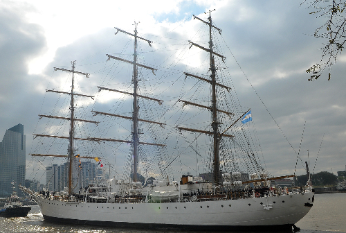 “Esta travesía tiene un significado especial ya que después de superar el conflicto con Ghana, La Fragata Libertad retomó su función formativa y cultural”, destacó el ministro Rossi al darles la bienvenida en la Dársena Norte de esta cuidad.