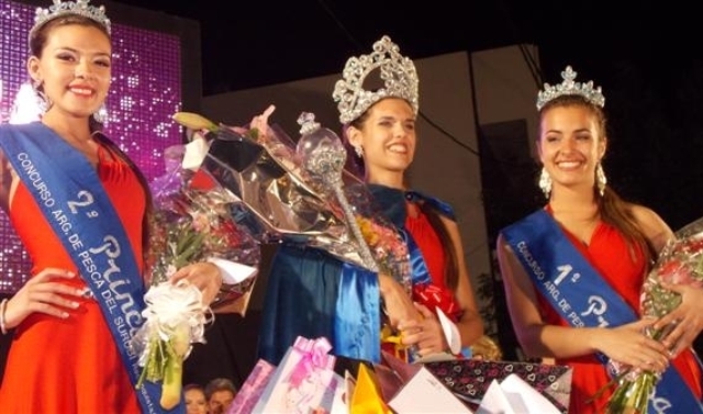 RECONQUISTA – CONCURSO ARGENTINO DE PESCA DEL SURUBÍ – Ana Belén Hulet de 21 años, representante de Spa Ganasha, se convirtió en la nueva soberana del Concurso Argentino de Pesca del Surubí, al que deberá representar a lo largo de un año.En tanto que Aldana Rinesi, de 17 años, representante de la peña Manuel Ramírez fue elegida como primera princesa, y Sirley Masín de 18 años, representando a Pacífico Limpieza, es la nueva segunda princesa.