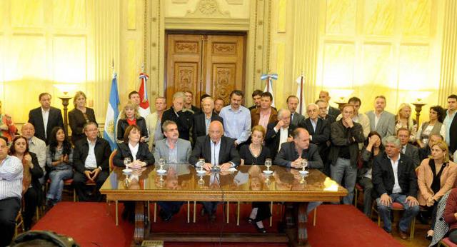PROVINCIALES – Fuerte respaldo de todas las fuerzas del arco político: “No es una bandera de este gobierno solamente; es de todos los partidos políticos, de las instituciones, los tres poderes del Estado; y todas las jurisdicciones: Nación, provincia y municipio”, dijo.Me siento más fuerte que nunca y vengo a ratificar el rumbo que tomamos de combatir a las organizaciones violentas. Lejos de amedrentarnos, este ataque nos une y nos da más fuerzas porque con este mensaje nos están diciendo que estamos en el camino correcto”, afirmó el sábado el gobernador Antonio Bonfatti, en la conferencia de prensa brindada al mediodía en la sede del gobierno provincial en Rosario, para referirse al atentado que sufrió en la noche del viernes en su domicilio particular en esa ciudad.