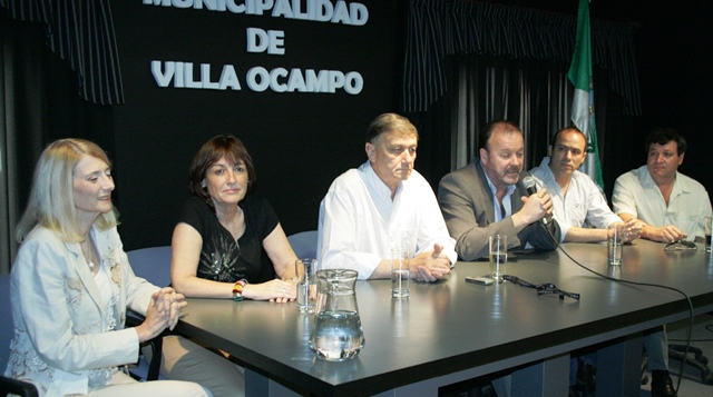 VILLA OCAMPO – Visitaron la ciudad de Villa Ocampo, los candidatos a diputados nacionales Hermes Binner, Ana Copes y Alicia Ciciliani, quienes fueron acompañados por Enrique Paduán y los candidatos a Concejal Diego Fontana y Dante Pereson en la conferencia ofrecida en el palacio municipal de la ciudad ocampense.“No vendemos espejitos de colores, ofrecemos acciones concretas”, expresó Hermes Binner.