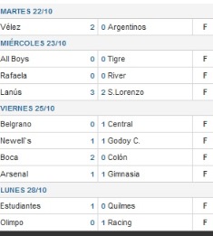 Deportes Resultados fecha 13 29 octubre, 2013 Compartir en Facebook Compartir en Twitter tweet ASOCIACIÓN DEL FUTBOL ARGENTINO – Resultados de los partidos de la fecha 13, que arrancó la semana pasada y finalizó este lunes con la victoria de Racing.