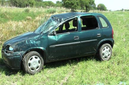 EN LA RUTA 100 S – Minutos antes del mediodía de este miércoles 30 de octubre, un automóvil Corsa despistó de la Ruta 100 S al esquivar una camioneta 4×4 doble cabina y volcó.Los dos ocupantes resultaron ilesos, observándose sólo daños en el vehículo. El conductor del mismo, Juan Manuel Delfino, de 35 años, oriundo de Villa Guillermina, declaró que la camioneta circulaba en sentido contrario, pero se cruzó de carril. Por tal motivo, Delfino maniobró para evitar el choque frontal y terminó despistando al perder el control del rodado.