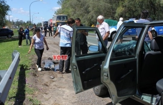 Mientras que por calle Mitre hacia el Este lo hacía el ciclista Fabián Acosta, de 37 años. Al subir a la ruta es embestido por el Fiat de Venturini, quien lo lleva por más de 70 metros sobre el capot y luego terminó cayendo sobre la banquina Este de la ruta.