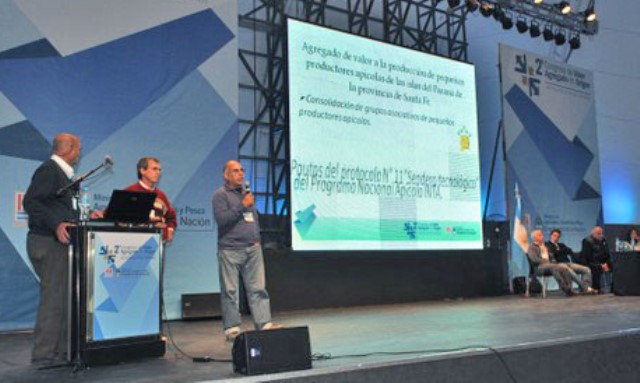 EN TECNÓPOLIS – Apicultores participantes de la cooperativa “Comercio Solidario” compartieron su experiencia de exportación de miel orgánica producida en zona de islas en el 2° Congreso Valor Agregado en Origen, en Tecnópolis.Frente a 1.200 personas Mario Wingeyer de Romang y Carlos Micheloud de San Javier, en el auditorio «La Nave de la Ciencia» en Tecnópolis, contaron la experiencia de la que junto a un grupo de productores apícolas son protagonistas: la exportación de miel orgánica a través de la Cooperativa de Provisión de Servicios para Productores, Comercialización y Consumo Centro de Comercio Solidario Ltda.