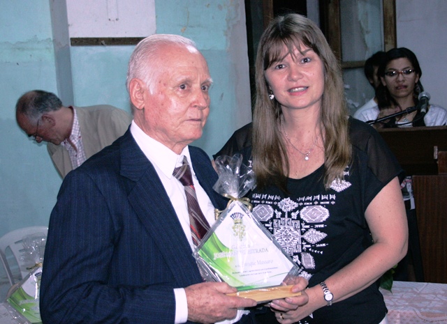 Se homenajearon a tres profesores que ingresaron al plantel del Colegio secundario, allá por el año 1963, en este caso a Aldo Bustamante, Anita de Mussín y María Elena de Pyzniak.