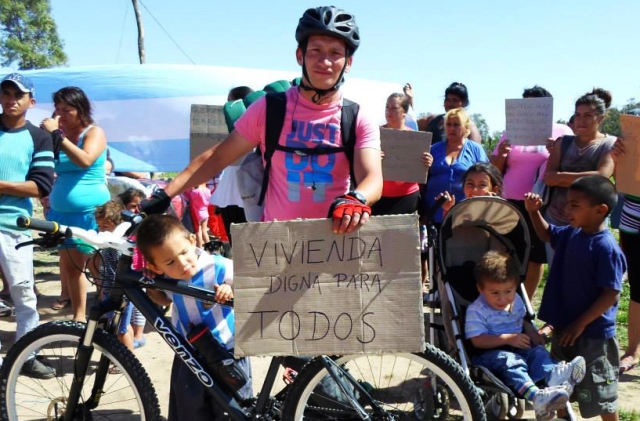 DE CORDOBA A CAPITAL FEDERAL – César Gigena es un vecino cordobés que partió hacia Capital Federal este lunes 18 de noviembre, en forma de protesta. Su pedido es que 533 familias puedan acceder a comprar los terrenos del predio que han tomado en Camino a 60 cuadras, lindero al barrio de Quebracho, en Córdoba Capital.La falta de respuesta del estado cordobés movilizó a este vecino, quien dejó a su mujer e hijos en la toma y partió en bicicleta el pasado lunes rumbo a Capital Federal, para llevar su reclamo al Ejecutivo Nacional.