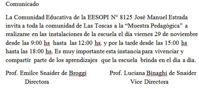 LAS TOSCAS – EESOPI Nº 8125 JOSÉ MANUEL ESTRADA