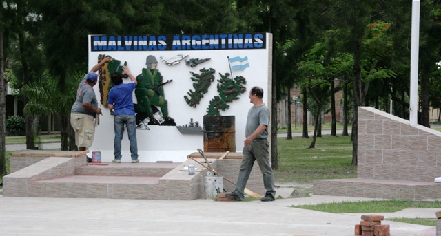 “Va a tener tres espacios, el principal que está en el medio va a ser el monumento a Malvinas, donde se va a recordar a las islas y la gesta de 1982 a través de una artesanía en sobre relieve de cemento. El que está a la izquierda será el monumento que recuerda a los caídos en el hundimiento del crucero ARA Gral. Belgrano, con los 323 nombres de quienes murieron en esa oportunidad, con la figura del buque tallado en mármol; y a la derecha va a estar la artesanía en madera representando al soldado y la placa de mármol con los 326 restantes que dieron su vida en esa guerra, para completar los 649 nombres de héroes argentinos”, agregó.