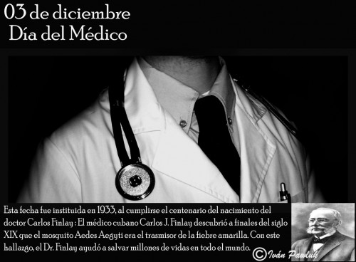 NACIONALES – En la Argentina, se festeja el Día del Médico desde hace 47 años. Fue una iniciativa del Colegio Médico de Córdoba, avalada por la Confederación Médica Argentina, y oficializada por decreto del gobierno nacional, en 1956.¿Por qué se eligió el 3 de diciembre? Porque ese día nació Carlos Finlay, el médico cubano que demostró el modo de transmisión de la fiebre amarilla -a través de un mosquito-, un hallazgo de trascendencia mundial que evitó miles de muertes en América latina.