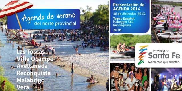 EN RECONQUISTA – Este miércoles 18 a partir de las 20 hs. en el Teatro Español de Reconquista se hará prensentación formal de la Agenda de Verano Regional 2014, con la participación de comunas y municipios de la región Norte-Ruta 11, junto a la Secretaría de Turismo de la Provincia.La provincia, a traves de la Secretaría de Tursimo, presentará este miércoles 18 a las 20 horas en el Teatro Español de Reconquista, la agenda de verano 2014 para el norte provincial.