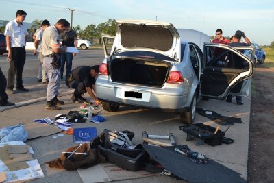 Es por ello que solicitaron auxilio a la policía caminera de la provincia del Chaco, en un operativo cerrojo, montado en el km 999 de la ruta nacional once, a la altura de la empresa Amarilla gas, jurisdicción de Resistencia, donde la policía Chaqueña logró detener el auto con los dos ocupantes, ambos correntinos, uno de apellido Díaz de 38 años y el otro de apellido Verón de 43 años.