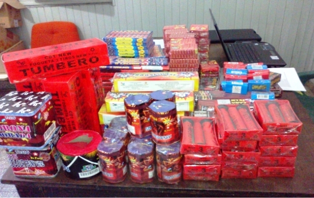 Entre el material secuestrado también se encontraban 40 cajas de fósforos cohetes, de 50 displays con 40 u marca Cienfuegos; 1 caja de Bengalas sin humo, marca Cienfuegos de 6 cajas de 10 u; 1 caja de caña bomba de 80 cm marca Cienfuegos, conteniendo 12 cajas de 6 u; 1 caja de Garrafitas marca Freecolors, conteniendo 10 displays de 10 bolsitas con 10 petardos c/u; 5 cajas de morteritos marca Freecolors, conteniendo 48 displays por 6 u, 1 caja de 300 globos aerostáticos marca Freecolors; 4 cajas de avión nocturnos marca Cienfuegos, de 30 displays de 12 u c/u.