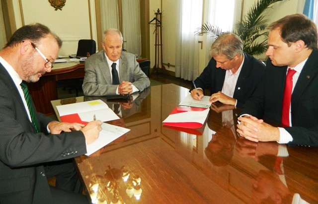 VILLA OCAMPO – El intendente Enrique Paduán recibió del Gobierno Provincial dos aportes por casi un millón de pesos para ser destinados a programas productivos y de prevención social.El gobernador Antonio Bonfatti, junto al ministro de la Producción, Carlos Fascendini, hicieron entrega de un nuevo aporte no reintegrable de $ 800.000.- con destino a los trabajos de traslado de la planta alcoholera local al Área Industrial; como parte de un proyecto integrado a la explotación de la cuenca cañera, donde el Gobierno Provincial brinda un acompañamiento decisivo que se vio reflejado en el apoyo para la concreción de la zafra 2013 en el Ingenio Arno y las gestiones que realiza para que nuevos inversionistas desarrollen en forma integral la cadena productiva de la caña de azúcar.
