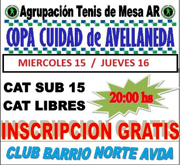 POR EL ANIVERSARIO DE LA CIUDAD – Este mes celebra un nuevo Aniversario la Ciudad de Avellaneda. Que mejor que festejar un año mas a puro tenis de mesa. Torneo aniversario «Ciudad de AVellaneda. Miércoles 15, categoría Sub 15 y jueves 16, categoría Libre. Todo a partir de las 20 horas.Este mes celebra un nuevo Aniversario la Ciudad de Avellaneda. Que mejor que festejar un año mas a puro tenis de mesa.