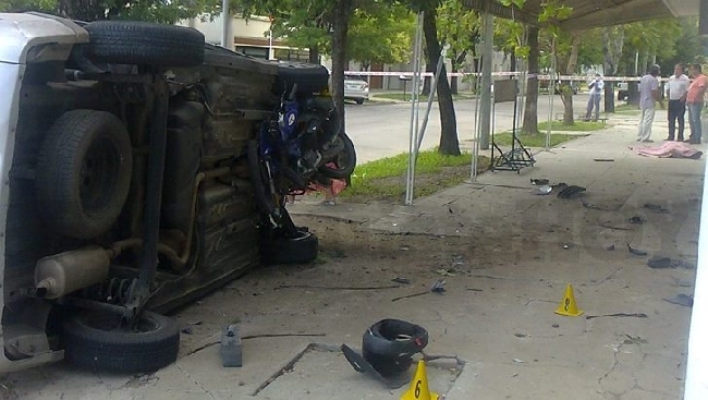 EN RECONQUISTA – Un joven perdió la vida en un choque con vuelco dentro del casco histórico de Reconquista. La moto quedó «pegada» debajo de la carrocería de la camioneta.Falleció en el acto Arturo Ismael Grismado. Tenía 24 años y vivía en el Barrio Velódromo de Reconquista. Conducía una moto Yamaha sin patente que chocó contra la VW Saveiro dominio JHP 433 guiada por Federico Nicolás Godeas, de 21 años, domiciliado en la Ciudad de Avellaneda, quien iba acompañado por Juan José González y una adolescente. La camioneta tumbó y quedó arriba de la vereda y sus tres ocupantes sufrieron lesiones menores.