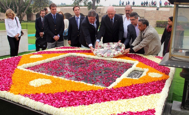 Tras la reunión, al gobernador se le concedió el honor de visitar y colocar una ofrenda floral en el mausoleo del pensador y político pacifista indio Mahatma Gandhi.