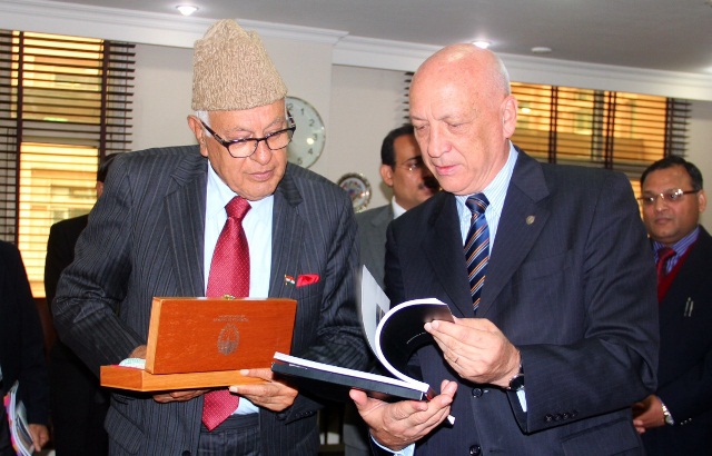 SOBRE ENERGÍAS RENOVABLES – En el marco de la misión comercial e institucional que encabeza en la República de la India, el gobernador Antonio Bonfatti se reunió en Nueva Delhi, con el ministro de Energías Nuevas y Renovables de ese país, Farooq Abdullah.»Venimos a aprender sobre la experiencia de la India y su enorme desarrollo en materia de energías renovables. Por ser un área tan estratégica para este país, el ministro Abdullah es uno de los funcionarios más importantes del gobierno, y la posibilidad de tener una entrevista y presentarle los proyectos que estamos impulsando en la provincia es un gran paso para nosotros», destacó el gobernador, tras el encuentro, del que también participó, la secretaria de Relaciones Internacionales e Integración, Adriana Martínez; el subsecretario de Energías Renovables, Damián Bleger; y el senador, Lisandro Enrico.