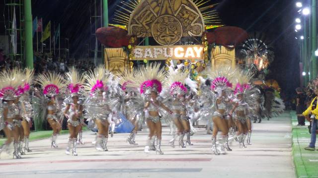 CORRIENTES CAPITAL – La 6° noche de corsos fue un éxito total, con tribunas repletas, mucho color y alegría, el público pudo disfrutar de un desfile de comparsas de primer nivel.Pasada las 22 Samba Show fue la primera en pisar el Nolo Alías, mientras las gradas rápidamente se iban colmado de un público que disfrutó con el paso de cada comparsa y agrupación musical. Después llego el turno de la primera comparsa de primera catogoría: Sapucay. Luego pasaron Kamandukahia, Arandú Belleza, Copacabana, Sambanda, Samba Total, Ará Berá y cerró la noche Imperio Bahiano.
