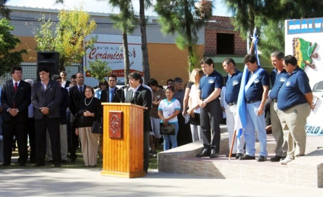En primer lugar en representación del Intendente Municipal habló el Secretario de Gobierno Eduardo José, confirmando la realización de la sede de los Ex combatientes ; luego, el Padre Tomas Spanghero bendijo a los presentes, para continuar con la interpretación de una poesía por parte de una alumna de la EFA y a continuación el artista local Darío Lugo cantó una canción alusiva.