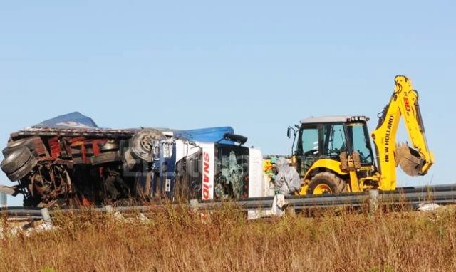 Se trata de un rodado que transportaba elementos con base sulfúrica y sales inorgánicas, por lo que se están coordinando las tareas para despejar y limpiar el área.