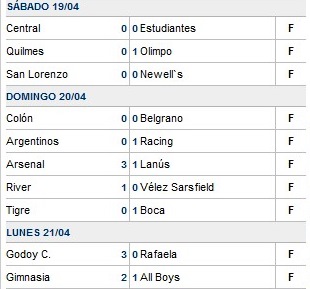 Resultados 15ª fecha