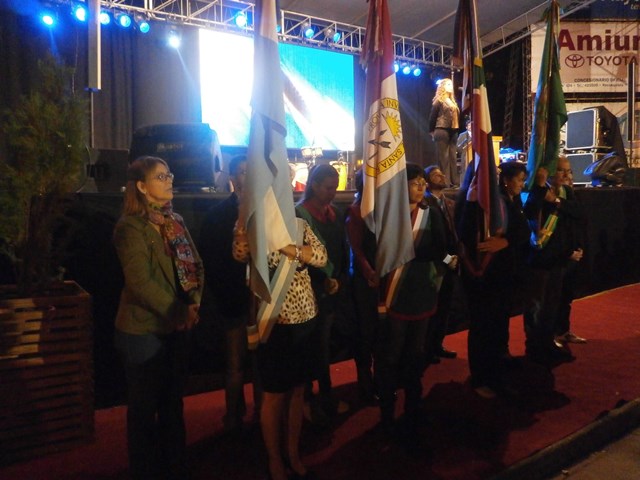 Luego del ingreso de las banderas de ceremonia, los presentes entonaron las estrofas del Himno Nacional Argentino interpretado de forma excelente por Luisina Mathieu al mismo tiempo que la imagen de la bandera argentina flameaba en una pantalla ubicada detrás. Acto seguido Carlos Solari y Cristian Bonavita ofrecieron a todos la canción “Los duendes de Reconquista” acompañados por imágenes de la ciudad.