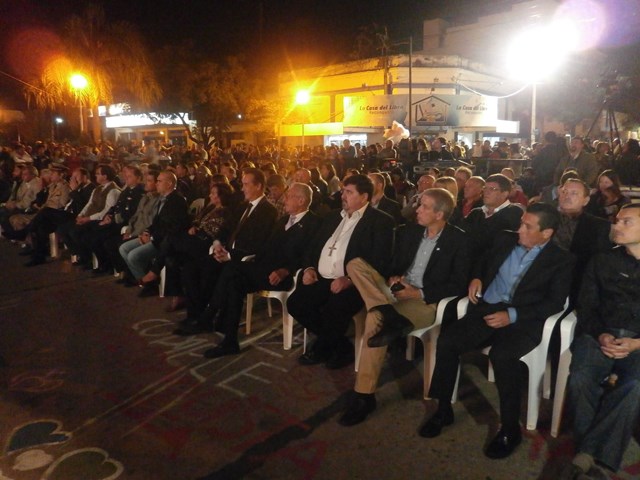 El acto oficial se desarrolló el sábado 26 con un público que colmó la Plaza 25 de Mayo para disfrutar y compartir la ceremonia protocolar, la cual estuvo presidida por el Intendente a cargo del Ejecutivo Municipal, Prof. Néstor Della Rosa, acompañado por autoridades provinciales, locales, concejales, representantes de salud, fuerzas de seguridad, y eclesiásticas.