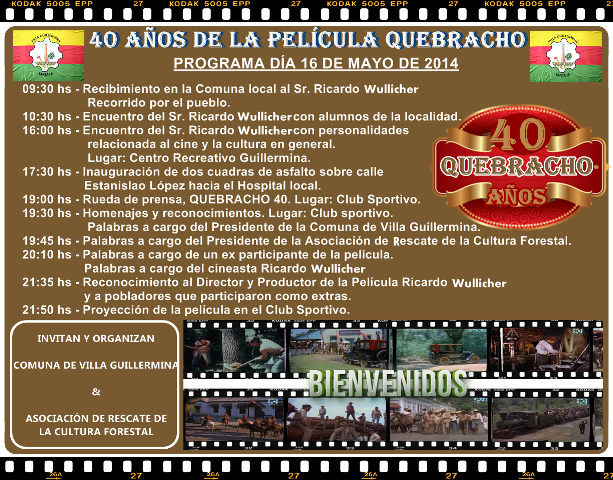 VILLA GUILLERMINA – Ricardo Wullicher, director de la película «Quebracho»; estará en Villa Guillermina en el Club Sportivo el 16 de mayo al cumplirse 40 años de su estreno. Cuando Ricardo Wullicher (director) tenía 24 años, rodó esta película tan importante para la historia del pueblo de Villa Guillermina.