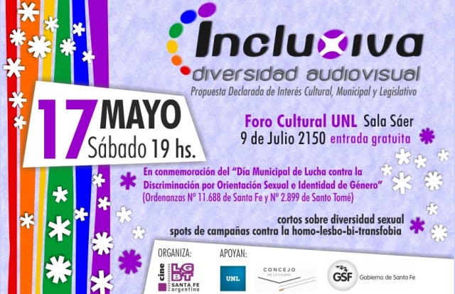 EN SANTA FE – El Ministerio de Innovación y Cultura informa que el sábado 17 de mayo se realizará una nueva edición de “Incluxiva Diversidad Audiovisual”, propuesta de cine y debate organizada por el espacio independiente de gestión cultural Cine LGBT (lesbianas, gays, bisexuales, transexuales) Santa Fe. La nueva edición será a las 19, en la sala Sáer del Foro Cultural de la UNL (9 de Julio 2150, Santa Fe), con entrada gratuita.
