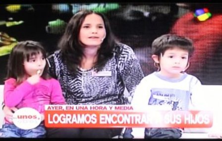 LA BÚSQUEDA DE ANTONELA – Este martes pasado, se vio en la TV argentina la historia de Antonella Dwojak en su desesperada búsqueda de sus tres hijos que el padre biológico de los mismos había secuestrado hacía semanas. Sucedió en el programa “Los unos y los otros” que conduce el “Negro” González Oro por el canal capitalino América TV; y a la hora y media de finalizado el programa, aparecieron los niños.Luego de la presión mediática de América TV, aparecieron los 3 niños secuestrados por su propio padre, hijos de Antonella Dwojak, de la localidad de San Antonio de Obligado. Tomás (5), Mía (4) y Luz (2) fueron finalmente rescatados cuando el padre –acorralado por la búsqueda mediática – decidió entregarse en la Comisaría Nº 38 de la Policía Federal.