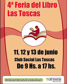 LAS TOSCAS – Invitan a participar de la 4° Feria del Libro el 11, 12 y 13 de junio en el Club Social Las Toscas, de 9hs a 17hs.»Invitamos a todos a participar de la 4° Feria del Libro el 11, 12 y 13 de junio en el Club Social Las Toscas, de 9hs a 17 horas».