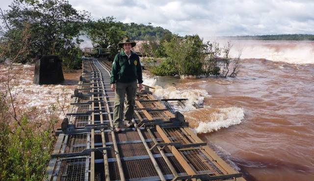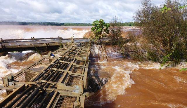 Según el Ina, esta crecida del río Iguazú es histórica, ya que el pico en las Cataratas sería de unos 40.000 m3/s durante el día de hoy, superando los registros de los últimos 40 años.