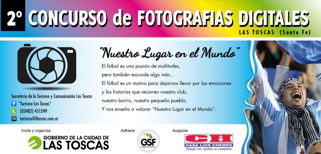 LAS TOSCAS – El gobierno de la ciudad de Las Toscas, a través de la Secretaría de Turismo y Comunicación, dio apertura del Segundo Concurso de Fotografía Digital que se extenderá a lo largo de todo el mes de Julio, en el marco de la Copa Mundial Brasil 2014. Se pretende estimular la participación y creatividad de los ciudadanos y turistas, mediante la selección y publicación de imágenes que no sólo exhiban la pasión futbolera masiva, sino también el espíritu deportivo que se vive en los pequeños clubes institucionales de cada barrio, de cada pequeña localidad, y promover desde allí la conservación del patrimonio cultural e identitario de cada grupo social movilizado tras este evento mundial.
