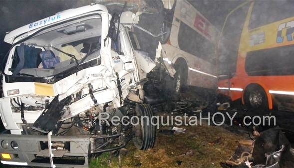 3 camiones, 2 ómnibus y 2 automóviles protagonizaron un choque con varios heridos en la Ruta Nacional 11, jurisdicción de la Ciudad de Vera, Región Reconquista.