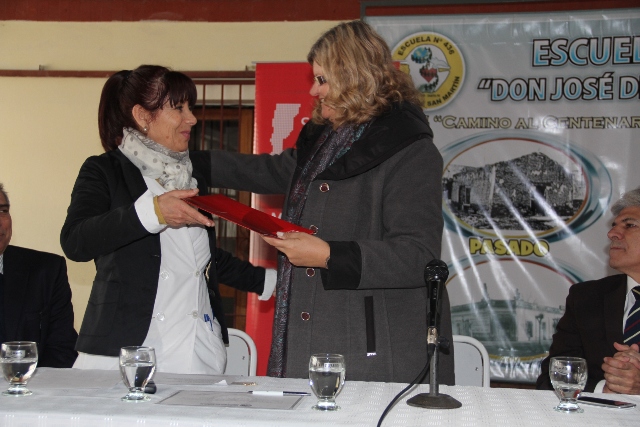 Luego en la escuela primaria N° 436 de San Javier, la ministra hizo entrega de los aportes que serán destinados a obras de reparación de veredas, demolición de canteros, construcción de rampas, colocación de aberturas y pintura general del edificio escolar por un monto de 186.992 pesos.