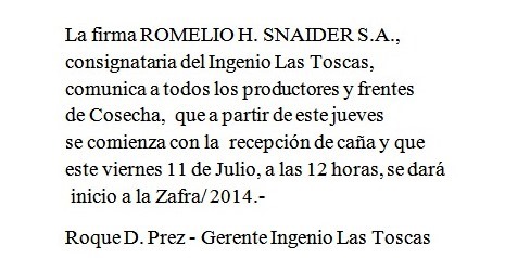 Agro Inicio de zafra 2014 10 julio, 2014 Compartir en Facebook Compartir en Twitter tweet INGENIO LAS TOSCAS –