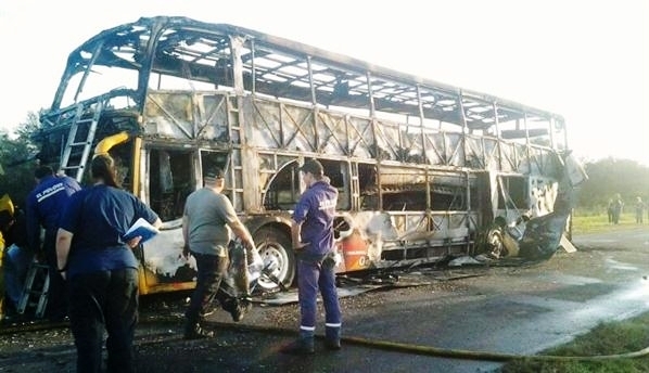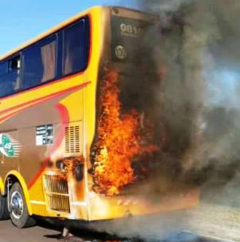 TRAYECTO FORTÍN OLMOS – RECONQUISTA – El chofer y los 47 pasajeros que estaban en viaje lograron escapar a tiempo y salvar sus pertenencias. El micro quedó reducido a cenizas.