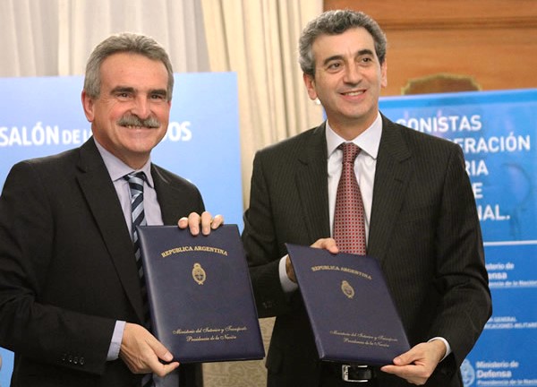 Los ministros del Interior y Transporte, Florencio Randazzo, y de Defensa, Agustín Rossi, firmaron este lunes un convenio para construir, a través de la empresa estatal Fabricaciones Militares, 1.050 vagones de carga que se sumarán al sistema ferroviario de la especialidad para bajar los costos de logística en las economías regionales. El acuerdo demandará una inversión de 972 millones de pesos y un plazo de ejecución de 22 meses.
