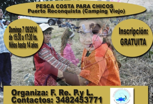 Se llevará a cabo un encuentro de Pesca de Costa para Niños/as este domingo 7 de setiembre, en la zona del Camping Viejo de Puerto Reconquista, de 16 a 17:30 horas.