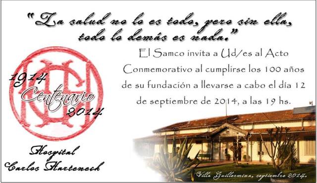 VILLA GUILLERMINA – El Hospital de Guillermina «Carlos Harteneck” celebra este mes el centenario de su creación, bajo el lema «La salud no lo es todo, pero sin ella todo lo demás es nada».