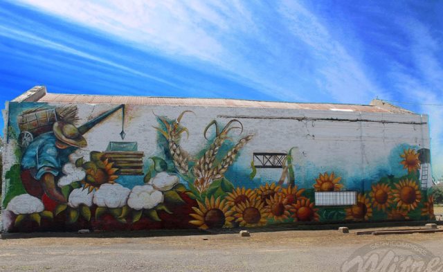 Impulsado por el grupo “Raíces Mercedeñas”, conformado por vecinos y ex residentes del paraje Las Mercedes, se concretó el proyecto de pintar un mural gigante en una de las paredes del depósito contiguo a la histórica chimenea, recientemente recuperada y puesta en valor, a la vera de la Ruta Nacional 11.