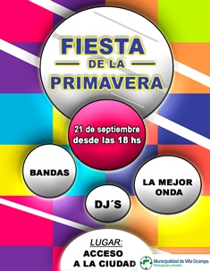 VILLA OCAMPO – La Municipalidad de Villa Ocampo invita a disfrutar de la Fiesta de la Primavera 2014, este domingo 21 de setiembre, a partir de las 18:00 Hs. en el acceso principal de la ciudad.Actuarán bandas locales, animación musical de DJ’s y toda la mejor onda de la juventud ocampense.