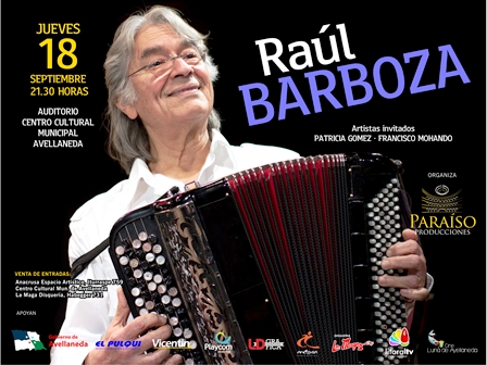 El talentoso compositor e intérprete argentino Raúl Barboza se presentará este mes en el Auditorio Municipal de Avellaneda junto a Nardo González en guitarra y Roy Valenzuela en contrabajo. Los artistas locales invitados serán Patricia Gómez y Francisco Mohando.