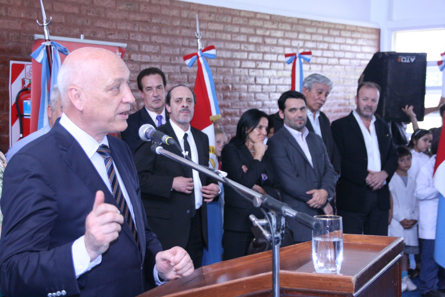 El funcionario provincial insistió en el hecho de que “una escuela nueva es un lugar adecuado donde nos alberga a todos, que nos da la posibilidad de practicar deportes, de tener calefacción o refrigeración de acuerdo al clima, y nos brinda la belleza que implica una arquitectura moderna. Pero lo más importante es lo que ocurre adentro; y lo que ocurre adentro, también se puede hacer debajo de un árbol, como nos enseñaban las hermanas Olga y Leticia Cossettini, esas famosas educadoras que trascendieron las fronteras de Santa Fe y la Argentina. Me refiero al acto en sí de la transferencia del amor que significa la educación. Y la educación no es solamente una transferencia de conocimientos, es algo mucho más profundo, que tiene que ver con nuestra cultura, con nuestra identidad, lo que hacemos todos los días con nuestros gestos, actos, palabras, símbolos, con lo que les vamos transmitiendo oralmente a las generaciones que vienen, acerca del esfuerzo, del sacrificio, del valor del trabajo”.