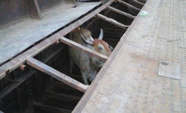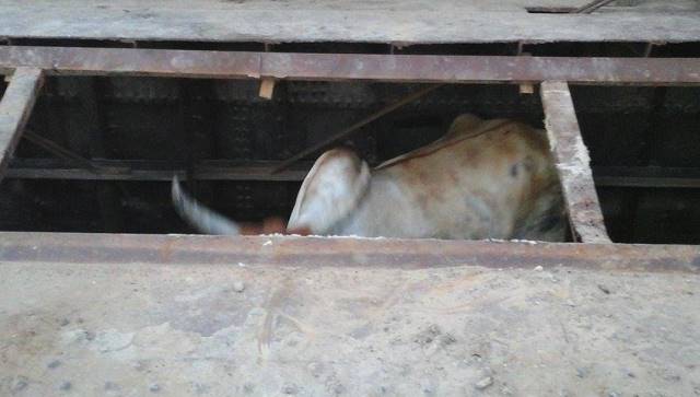 El animal era trasladado por su dueño junto a 3 animales más, y al cruzar la balsa, de este a oeste, el novillo perdió equilibrio y cayó por uno de los costados, los cuales no tienen las chapas ya que las retiraron para realizar arreglos, quedando atrapado y con heridas.
