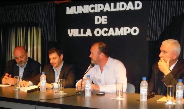 En el acto en la Municipalidad de Villa Ocampo, se entregaron fondos al Ejecutivo local para la construcción de 35 viviendas, por un total de 2.266.966 pesos, entregándose un aporte para empezar a completar un barrio de 32 unidades.