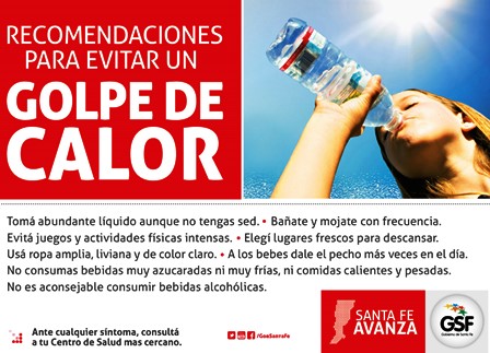 Entre las recomendaciones para prevenir el golpe de calor y en el caso de los niños, las indicaciones de la cartera sanitaria indican que se les debe ofrecer frecuentemente líquidos (agua o jugos naturales) y a los lactantes el pecho, no ofrecer bebidas muy azucaradas ni muy frías, no ofrecer comidas calientes y pesadas, incorporar mayor cantidad de sal que lo habitual, bañarlos o mojarlos con frecuencia.