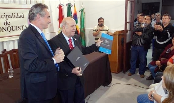 ROSSI EN RECONQUISTA – El ministro de Defensa, Agustín Rossi, entregó la edición impresa de las actas halladas el pasado año en el subsuelo del Edificio Cóndor en la Municipalidad de Reconquista.