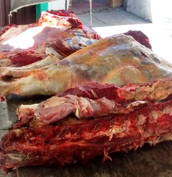 Se trataba de un automóvil marca Renault 18, con tres ocupantes masculinos y al realizar chequeo del baúl, observaron bolsas de nylon con carne vacuna y restos de cuero, como así también una escopeta, la que fue empleada para dar muerte al animal.